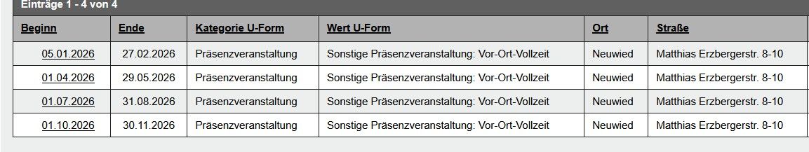 2. Termin 01. April bis 29. Mai 2026